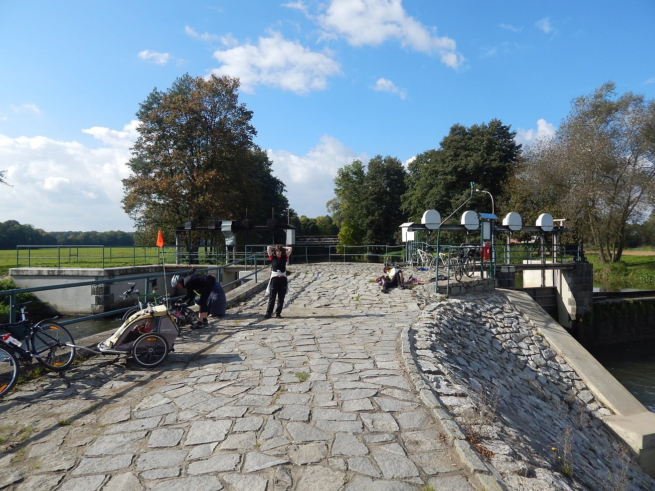 Hodnotná cykloturistická tůra bylo rozhodně putování údolím Moravské Sázavy od Zábřehu proti vodě a údolím potoka Březná, končící až v městečku Štíty. Při cestě činnost kulturně–poznávací, zřícenina hradu Hoštejn a Acrobatpark ve Štítech. Sobotní tůra vedla potom do horní části Litovelského Pomoraví nad Litovlí. Tam už to ale taková cykloturistická krása nebyla. Návštěva Mladečských jeskyní proběhla v rámci trasy, k tomu nějaké to cestovní osvěžení při slunném odpoledni, ale do cyklo-ráje má tahle oblast celkem dost daleko… Poslední den záletu pak už turistika individuálně, jak kdo chtěl a cítil, třeba vycházka na skály u Šumperka nebo hrad Bouzov…
