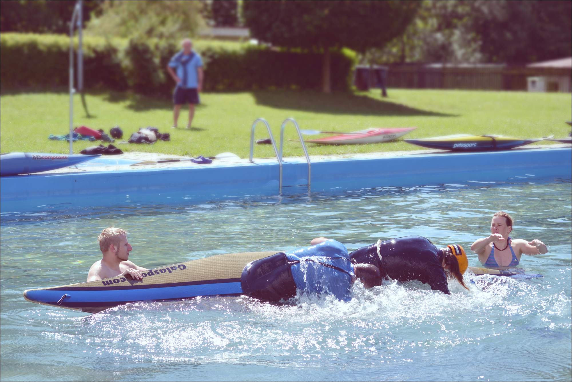 Po úspěšně vydařených závodech v Kadani, kde se konal i 5. a 6. Pohár předžáků, jsme se dne 3.7.2016 přemístili do obce Perštejn v okrese Chomutov. Našli jsme levné ubytování i s přírodním bazénem – co víc si přát. Sluníčko a super podmínky pro nácvik eskymáků. Trénovala mládež, ale také dospělí a veteráni.