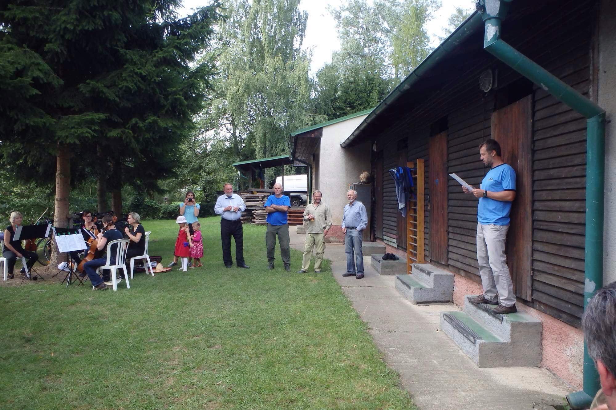 Slavnostní zahájení provázelo několik krátkých projevů, při kterých bylo vzpomenuto na mnohá jména zakladatelů a borců, kteří oddílem prošli. Následně pak kulturní vložka, vodácká produkce na vodě mezi opentlovanými brankami. Kajakářskému triu zahrálo do taktu kraso-pádlování smyčcové dámské kvarteto. Návštěvníci se mohli seznámit s minulostí a současností oddílu v pásmu promítaného výběru fotografií z různých období sestaveného do tematických bloků. Nechybělo společné fotografování. K tomu pečínka na ohništi, guláš a pivko sudové, točené a řádně chlazené. Příprava a provedení důstojné a kvalitní, jak jsme na loděnici zvyklí…