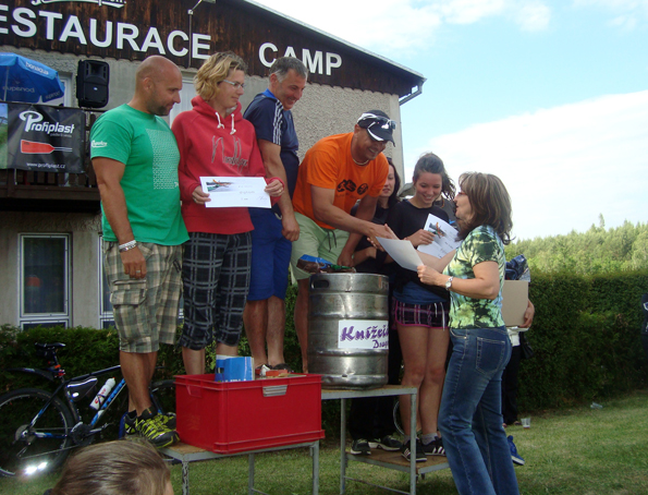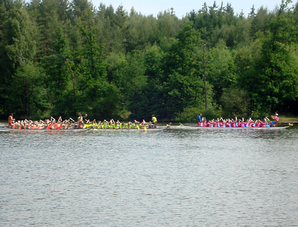 Z přihlášených 27 posádek některé odpadly a tak do celkového pořadí se hodnotilo 24 z nich. Proti loňsku o šest více!!! Na naše Draky VS Tábor zbyla tentokrát pomyslná medaile bronzová za 3. místo při rozhodování cílové kamery před druhými bechyňskými vodáky, teamem Bílé tornado. Do předního pořadí vstoupili borci z TJ Lužnice ještě rázněji než vloni a zvítězili. Hlavní cena, sud piva KNÍŽEČÁK DRAGON 11°, se tentokrát bude vypíjet na jiné loděnici než naší. Nenaděláme nic, ale jinak u nás dobrý. Dračí lodě v Táboře jsou kvalitou a mezi lidem popularitou a zájmem zatím pořád na vzestupu…